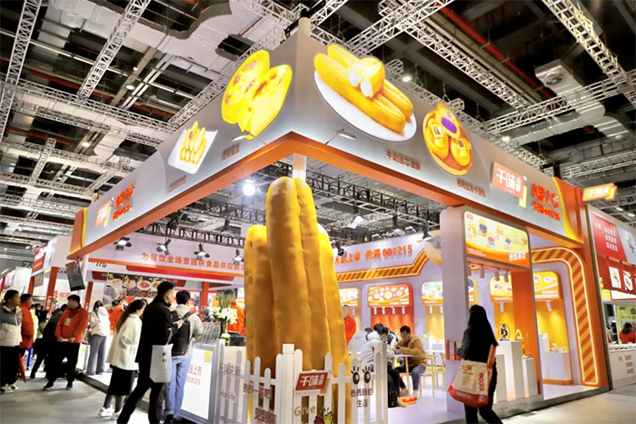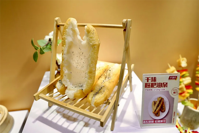 此次展出千味央廚及旗下品牌御知菜、千味小廚、味寶、岑夫子、納百味、興客坊產品共計六十余款,涉及油條、糕點、面點、油炸點心、湯品、烘焙、茶飲、預制菜肴等品類,吸引眾多觀眾前往了解產品。